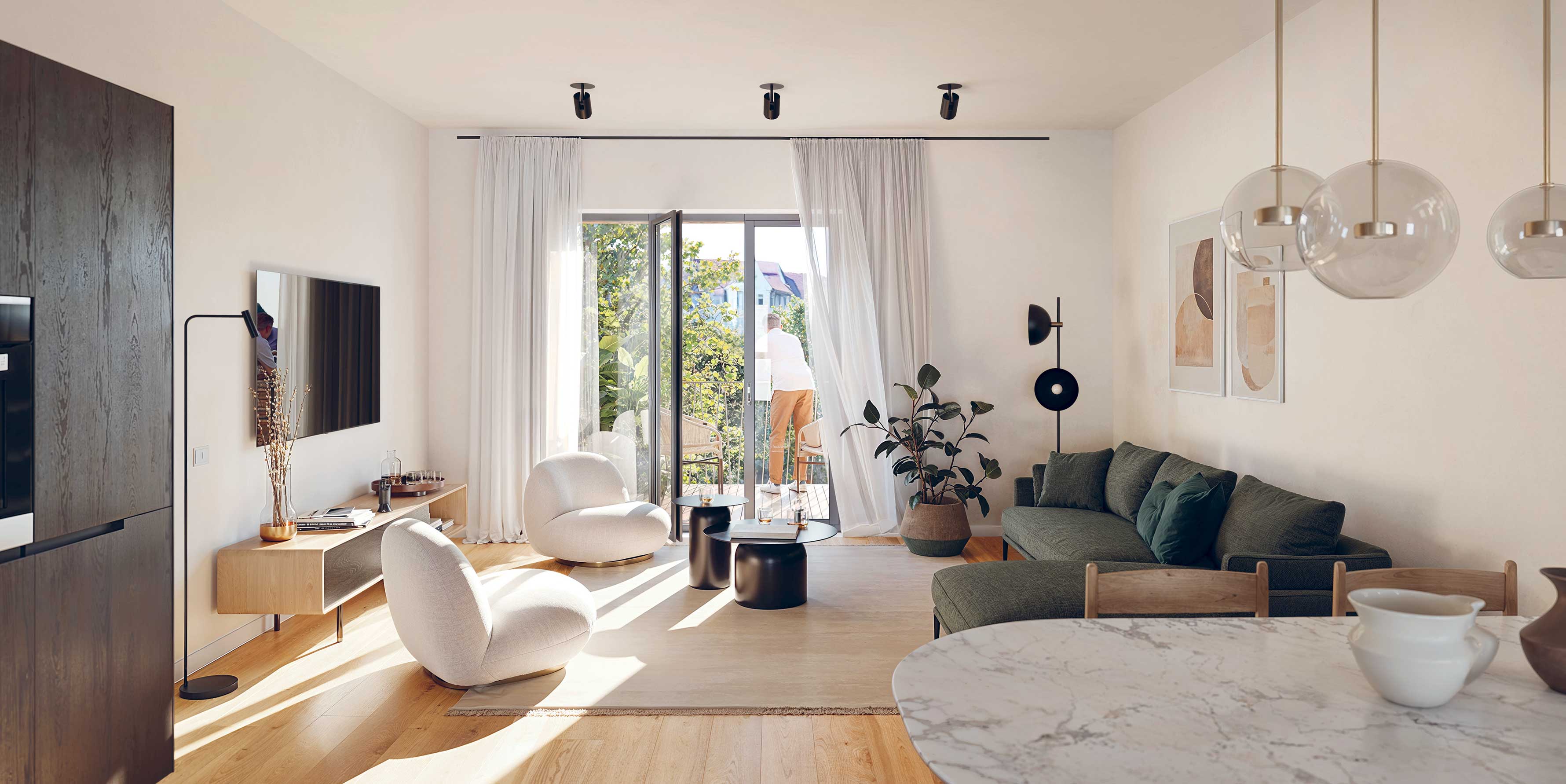 Die Grundrisse bieten viel Platz fürs Leben. Sogar in den Bädern und auf den Balkonen, die nicht etwa kleinformatig, sondern großzügig daherkommen.